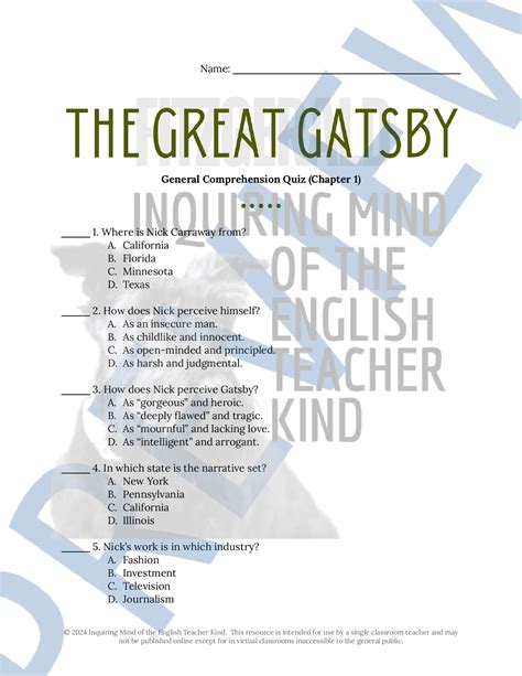 | File Name: Great Gatsby Chapter 1 Quiz .pdf Size: 6057 KB Type: PDF, ePub, eBook |