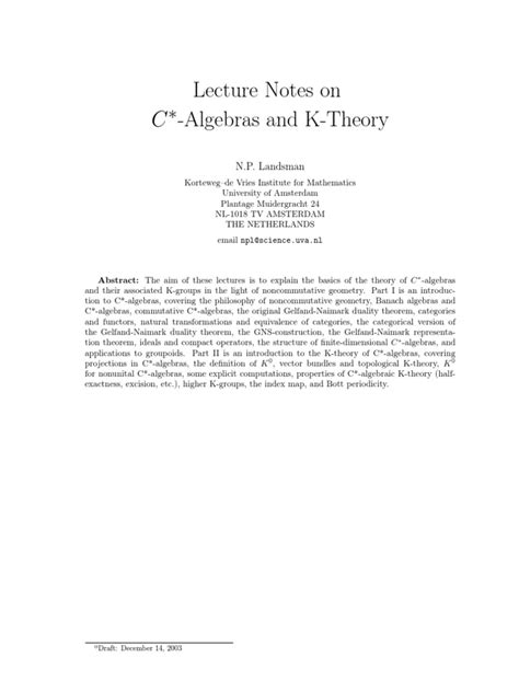 | File Name: Lecture Notes On C Algebras And K Theory .pdf Size: 6468 KB Type: PDF, ePub, eBook |